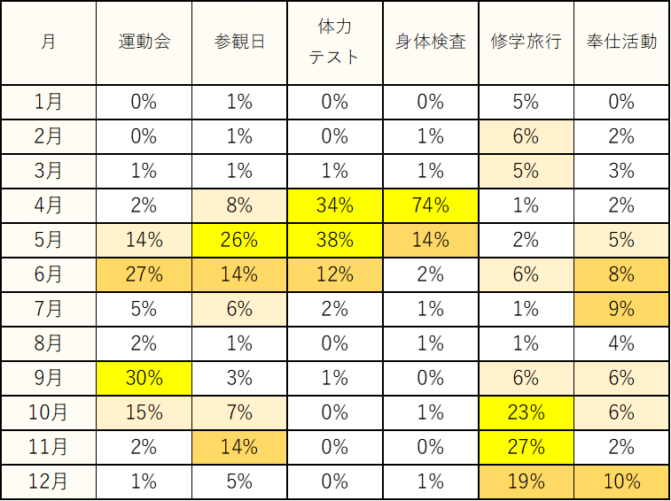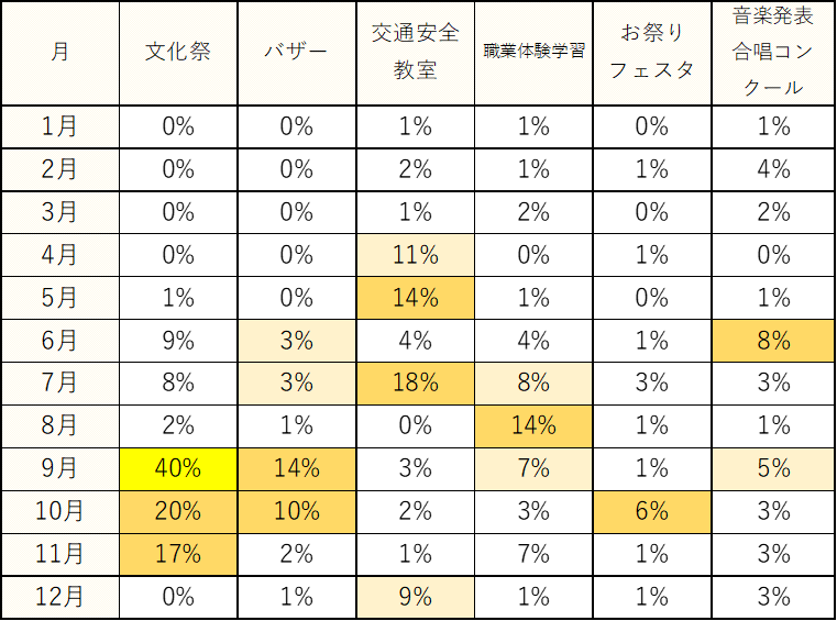 高校での各種イベント(催事)について、定番の開催時期はある程度集中している
