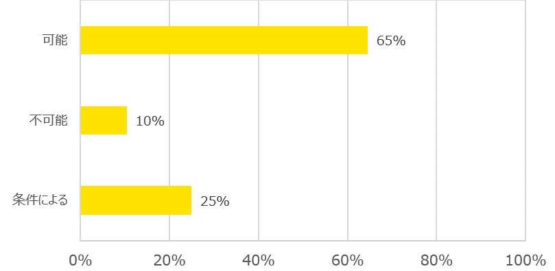 「可能」と回答した学校は65%でした。「条件による」と回答した学校の大半が「内容・日程により判断」という回答であり、「不可能」という回答は10%と非常に少ない結果となりました。