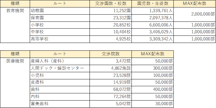 約70,700園/校、約192,000医院を交渉候補先としてネットワーク