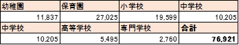 ※保育園・専門学校(専修学校)は一条校ではないため上記に含まれておりません。