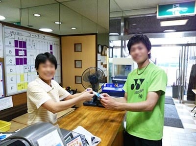 ・テニス施設のフロントにおいて、お帰りの際などにスタッフから手渡しでサンプリング。