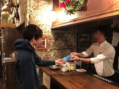 レストラン/カフェにてアルコールを注文したお客様に向けて経口補水液を配布。