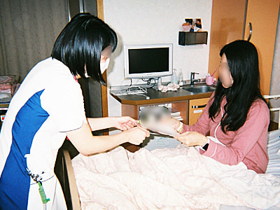 医療従事者から産婦人科に来院する妊産婦へ手渡し配布。